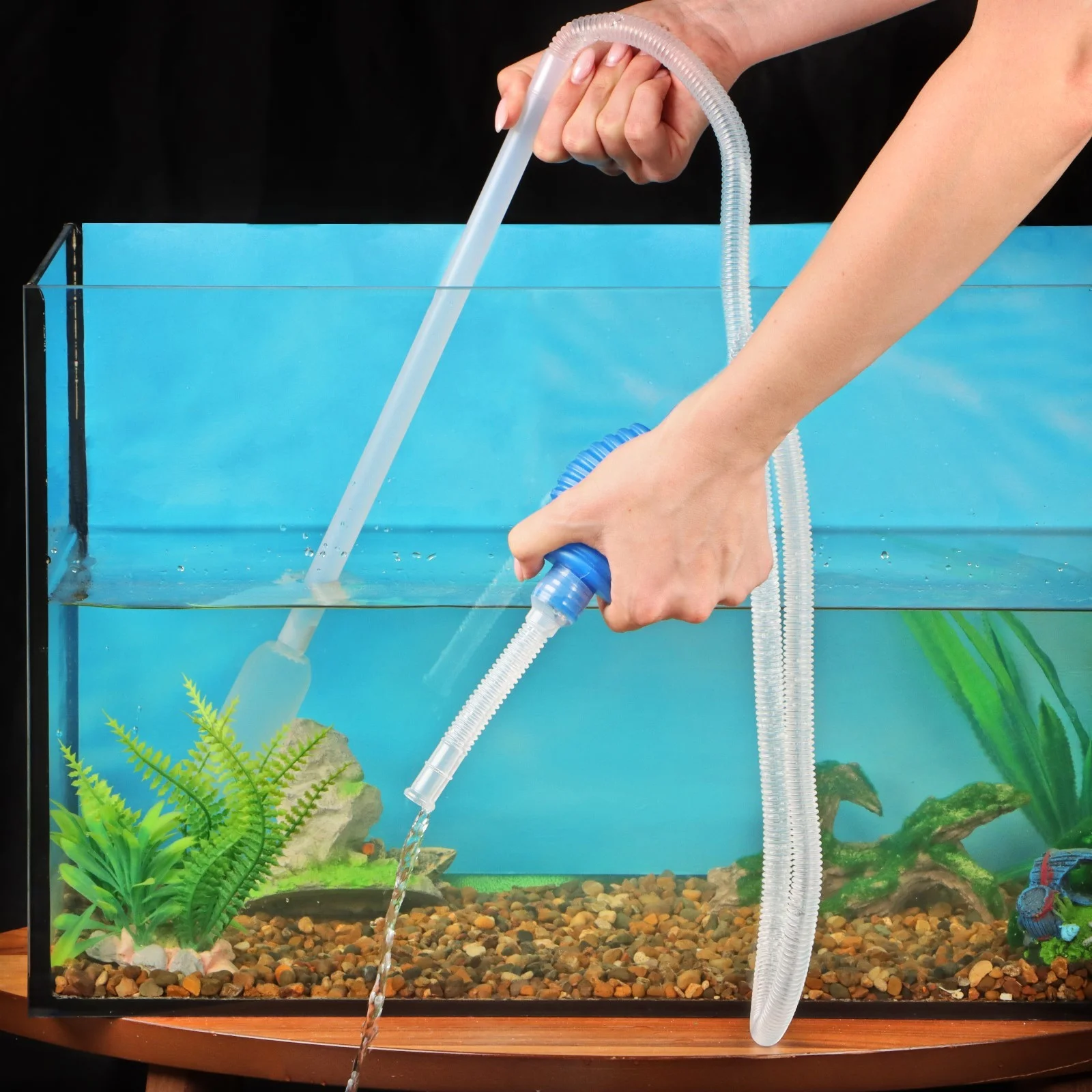 Аквариумный сифон удобен для ручного использования и обладает большой силой всасывания. Выполнен из пластика. У входного отверстия имеется сито внутри, которое собирает остатки корма и мусор с грунта. Чистит грунт и воду одновременно.