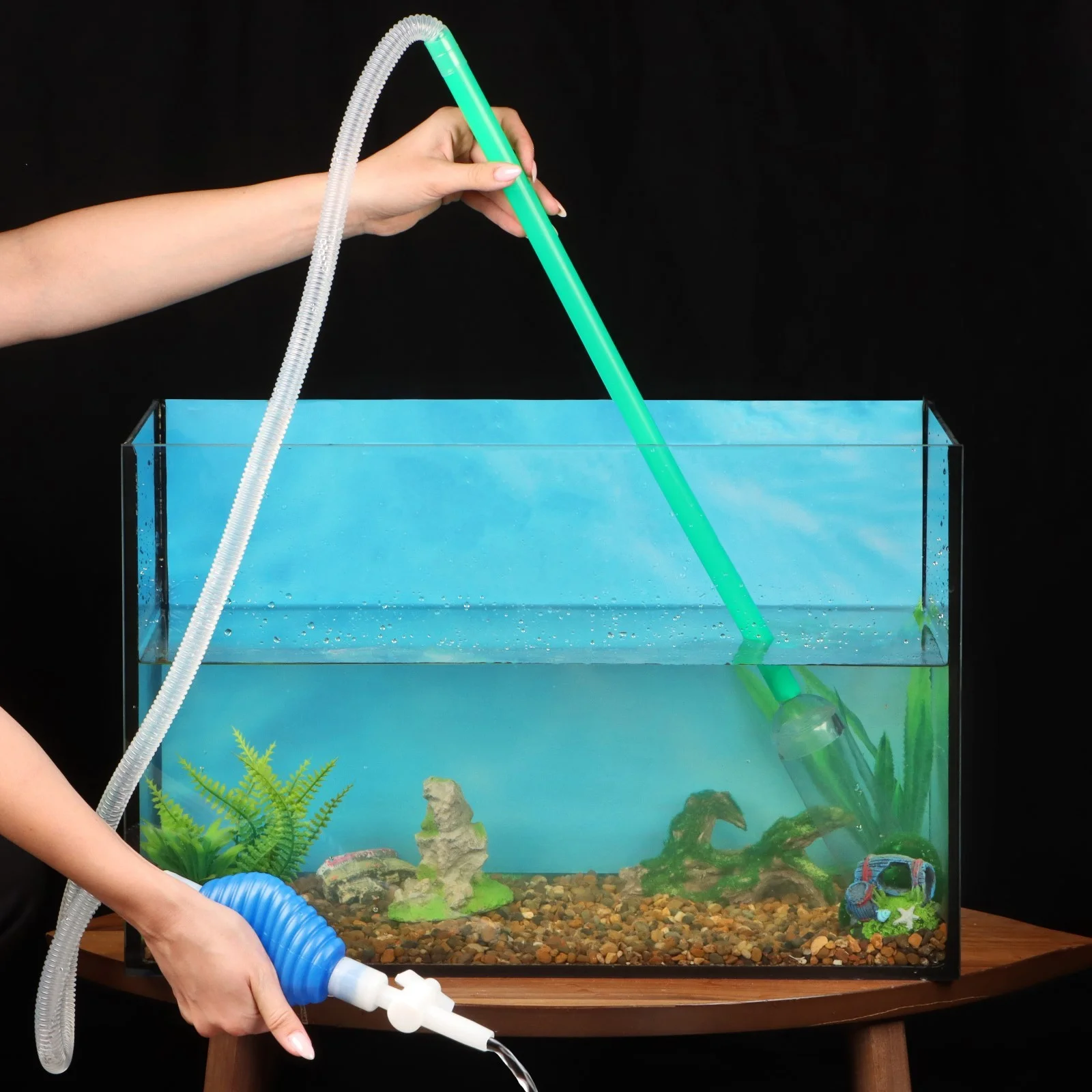 Аквариумный сифон удобен для ручного использования и обладает большой силой всасывания. Выполнен из пластика. У входного отверстия имеется сито внутри, которое собирает остатки корма и мусор с грунта. Чистит грунт и воду одновременно.