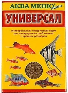Корм Аква Меню Универас для рыб Универсальный ежедневный корм для большинства видов аквариумных рыб: живородящих, цихлид, харациновых, лабиринтовых, карповых, различных сомов и других рыб длиной 2-8 см