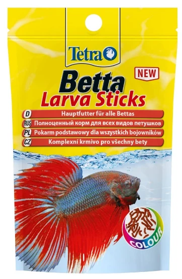 Betta Larva Sticks - это прекрасный мимикрический корм для петушков и других лабиринтовых рыб. Форма, размер и цвет имитируют настоящего мотыля для наиболее подходящего кормления петушков. Это палочки удобного размера, плавающие по поверхности воды. Помимо высококачественных ингредиентов поедаемость обеспечивает также движение по поверхности воды.