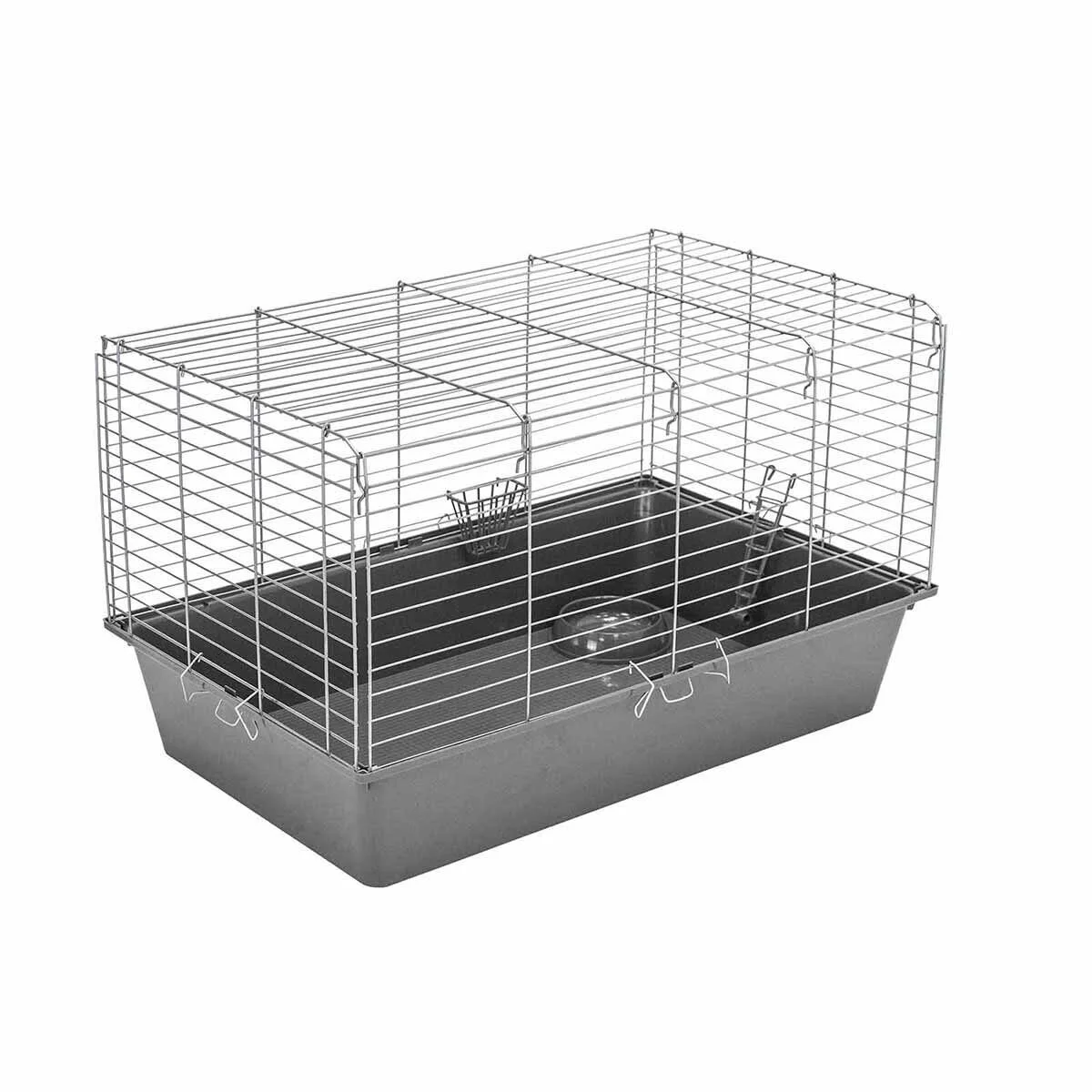 ECO Клетка РОДЖЕР №4 складная, шаг прута до 25мм, 78*48*h47см (+миска, 2 кормушки) сер-хром