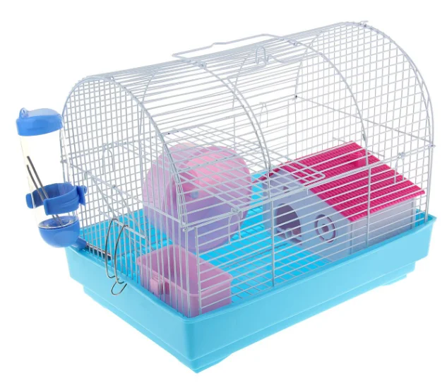 Сверху имеется ручка для переноски. Клетку для хомяка очень удобно брать собой в поездку.