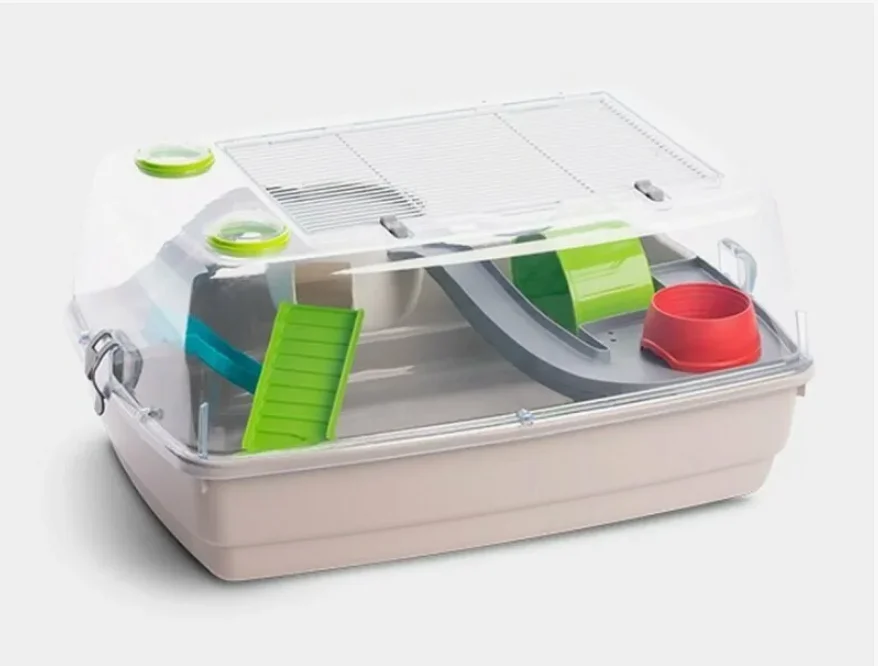 Клетка для грызунов My Pets Solutions BERNIE DELUXE. Клетка подходит для мелких грызунов. Конструкция состоит из прозрачной крыши, поддона, аксессуаров, крепежей. В комплект аксессуаров входят: мисочка, домик, колесо, лесенка, горка. Высокая надежность конструкции. Прозрачная крыша оснащена крепежами для тоннеля. Легко собирается. Легко моется. Материал: пластик. Размер: 53x38x25,5h см. Вес: 1,95 кг. Цвета в ассортименте