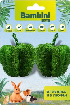 Съедобная игрушка из люфы для маленьких питомцев, таких как кролик, крыса, морская свинка, шиншилла, дегу, хорёк и даже крупных птиц! Эта удивительная игрушка выполнена из экологичного природного материала - люфы, что делает ее абсолютно безопасной для ваших любимцев. Игрушка – помогает наладить эмоциональный контакт между любящим владельцем и его питомцем! Чем больше вы проводите время с любимцем, тем больше вы друг друга начинаете понимать и доверять! Кроме того, игрушка из люфы еще и полезна для здоровья ваших питомцев! Благодаря своей крупноволокнистой текстуре, она профилактирует образование зубного налёта у зверюшек! Bambini Pets делаем жизнь малышей лучше и радостнее!