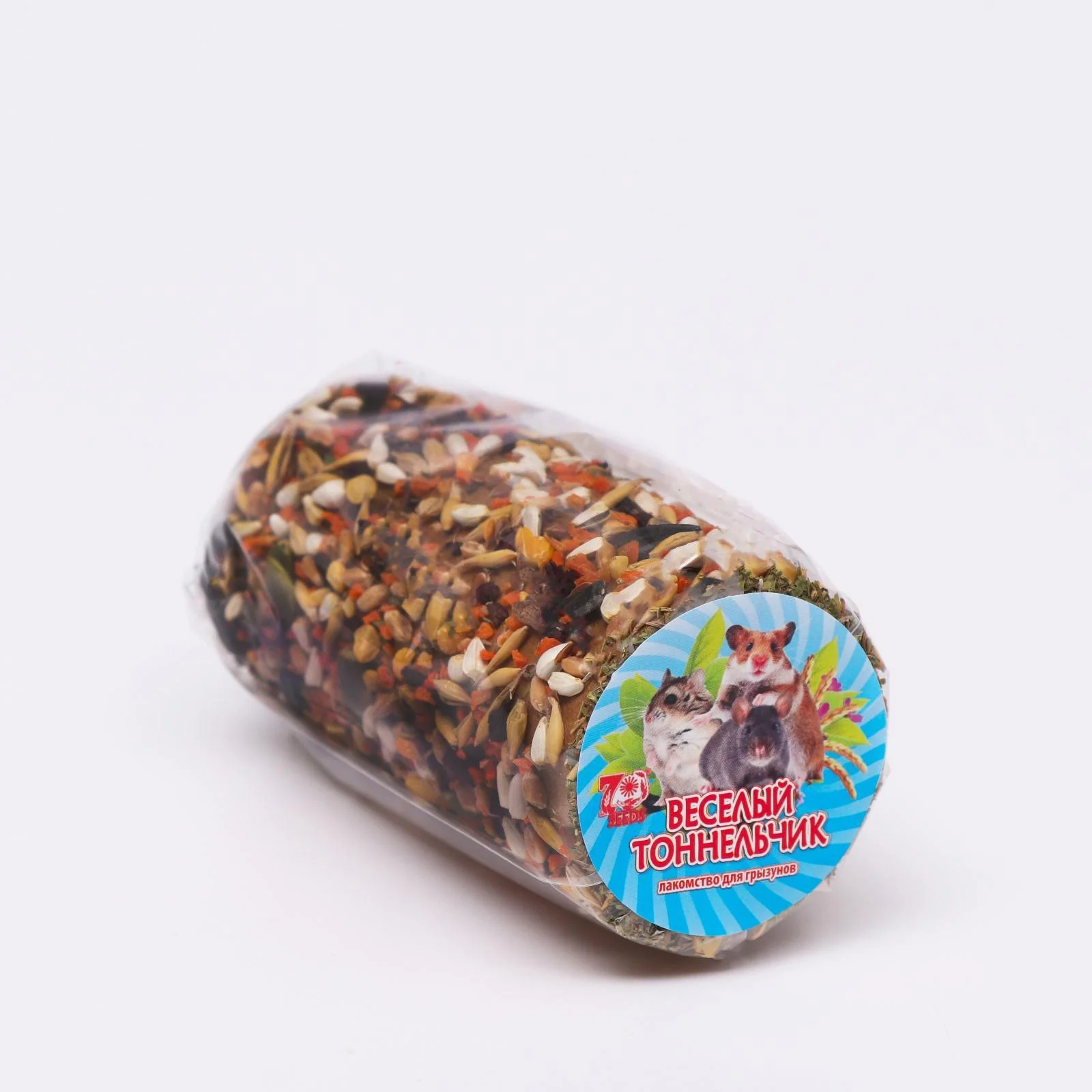 Лакомство для грызунов. Предназначено как дополнение к основному корму. Состав: овёс, пшеница, ячмень, подсолнечник, тыквенное семя, морковь, свёкла, сафлор, горох, красное просо, сено рубленое, картонный ролл.