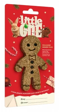 Лакомство-игрушка в форме человечка из новогодней лимитированной коллекции станет прекрасным подарком для травоядных питомцев. Полностью съедобный человечек из ароматных луговых трав с добавлением полезных ягод обеспечит уход за постоянно растущими зубами и надолго увлечет питомца.