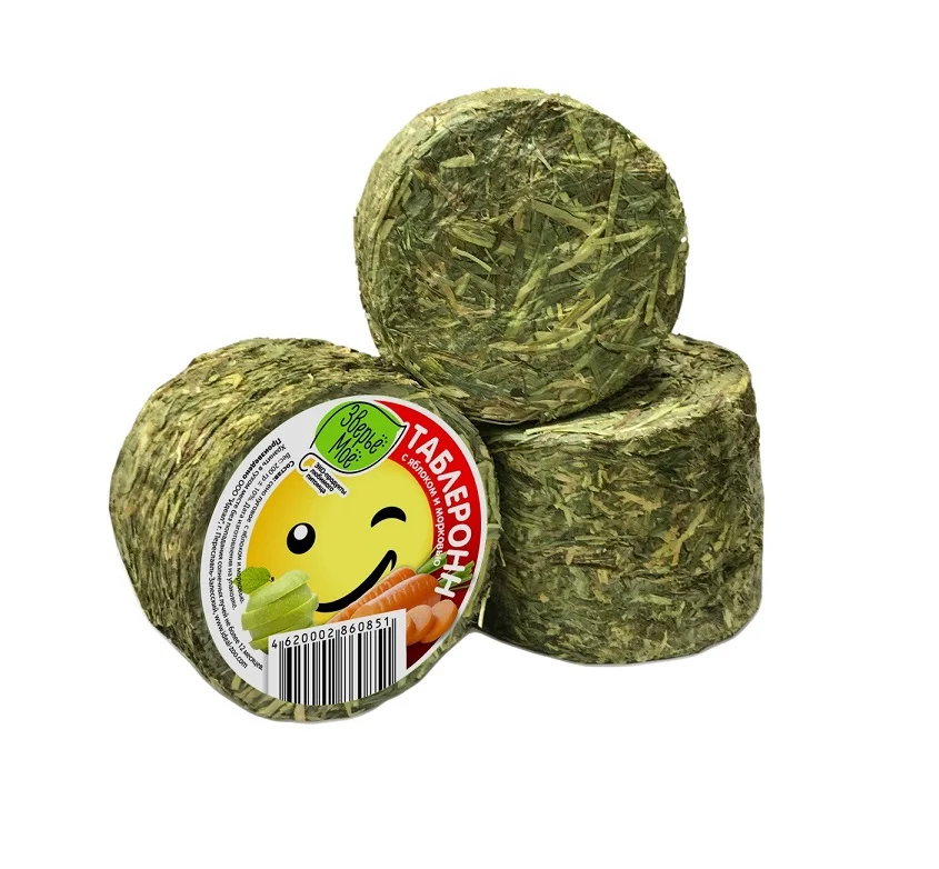 Уникальный ТАБЛЕРОНН "Зверьё Моё" - это спрессованное сено из луговых трав с яблоком и морковью (200 гр):