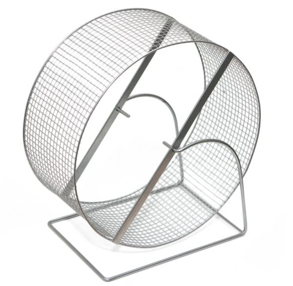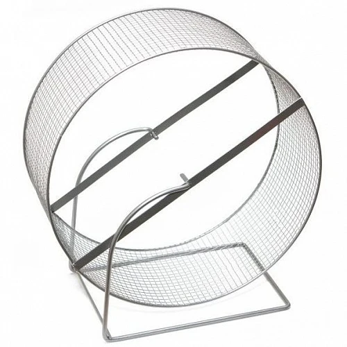 Представленное на картинке металлическое колесо с мелкой сеткой самое безопасное отличается от других тем, что его можно прикрепить к стене клетки или поставить на пол.