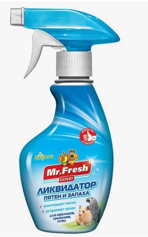 Встряхните флакон и обильно распылите средство на поверхности клетки и аксессуаров. Подождите 5-10 минут. Насухо протрите тряпкой или салфеткой.