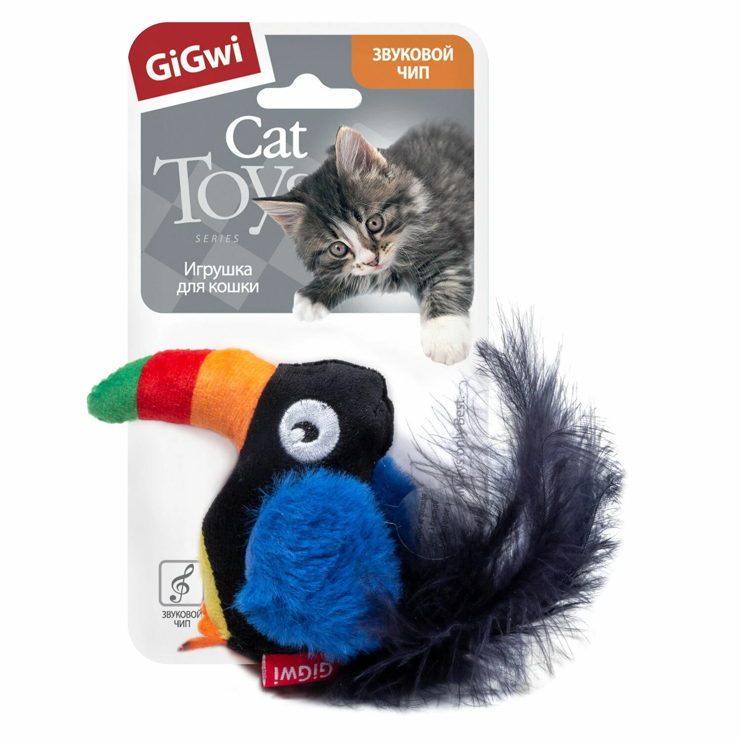 Игрушка для кошек GiGwi “Тукан с электронным чипом”, выполненная из текстиля и натурального пера, не позволит заскучать вашему пушистому питомцу. Играя с этой забавной игрушкой, маленькие котята развиваются физически, а взрослые кошки и коты поддерживают свой мышечный тонус. Игрушка для кошки дополнена музыкальным чипом, срабатывающим при прикосновении.
