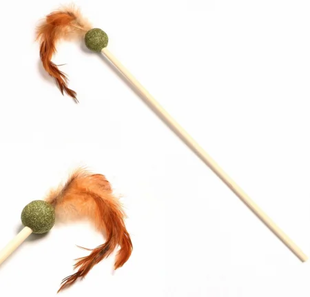 Длина палочки: 38 см. Диаметр шарика мяты: 3 см. Материалы: дерево, кошачья мята, перо.