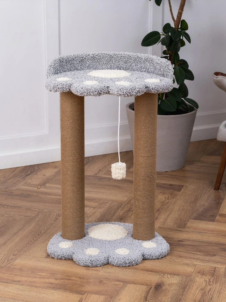 Лапка - прочная и устойчивая когтеточка с большим основанием 45x55 см, простая в уходе и сборке: все необходимые детали и инструкция входят в комплект. Толстые столбики высотой 77 см и диаметром 11 см имеют бОльшую площадь для заточки когтей по сравнению со стандартными моделями 7 см, что особенно актуально и удобно для крупных питомцев, продлевают срок службы каната, а также увеличивают вес всего изделия. Свободная верхняя полочка размером 45x55 см с игрушкой-помпоном позволит с комфортом разместиться коту практически любого размера, а бортик поддержит его во время отдыха и сна. Модель в ковролине даст домашнему любимцу возможность точить когти как о горизонтальную, так и о вертикальную поверхность и станет прекрасной альтернативой мебели и коврам. Вес когтеточки 11,2 кг, высота в собранном виде 90 см.