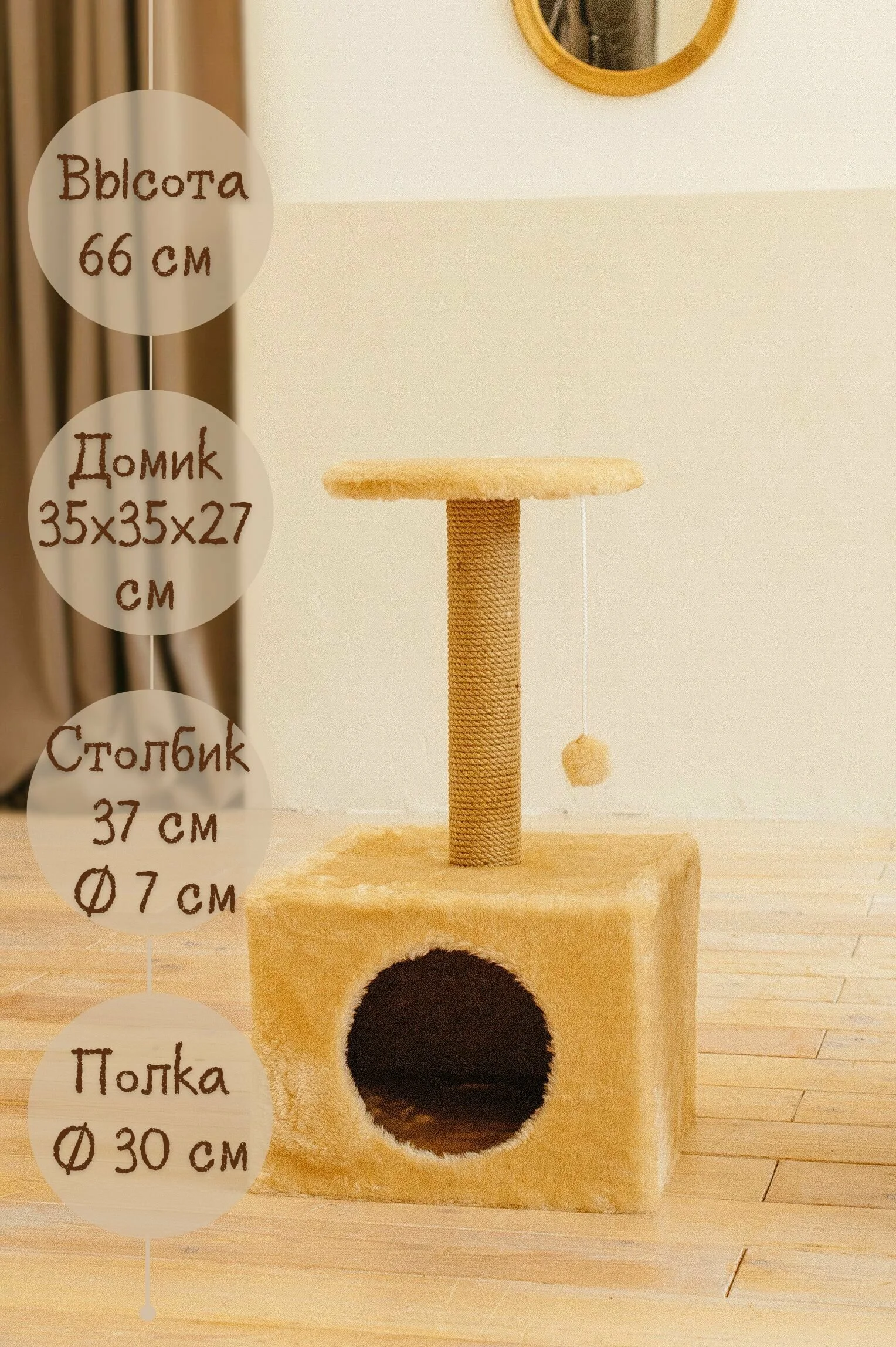 Когтеточка Руби 35х35х66 см Бежевый