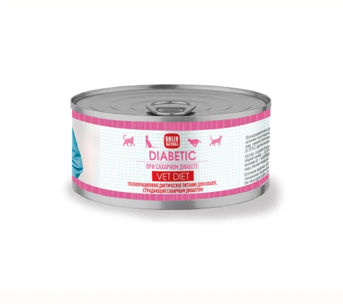 Полнорационное диетическое питание для кошек, помогающее регулировать уровень глюкозы в крови при угрозе сахарного диабета и показаниях при наличии подтверждённого диагноза сахарного диабета