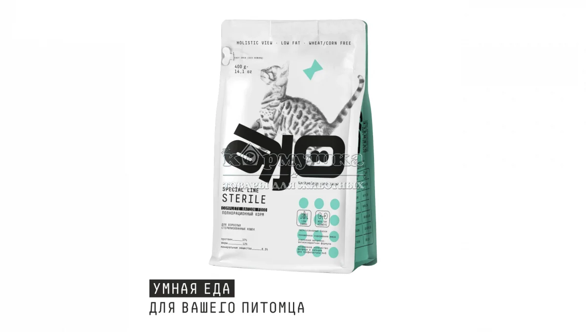 Сухой корм АЙО, AJO Cat Sterile для активных стерилизованных кошек с высоким содержанием белка, с индейкой и уткой