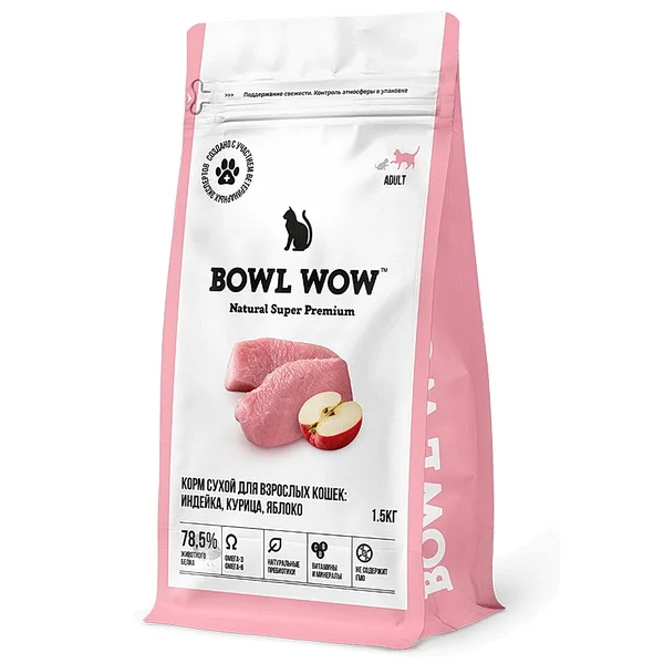 КОРМ СУХОЙ ДЛЯ ВЗРОСЛЫХ КОШЕК: ИНДЕЙКА, КУРИЦА, ЯБЛОКО