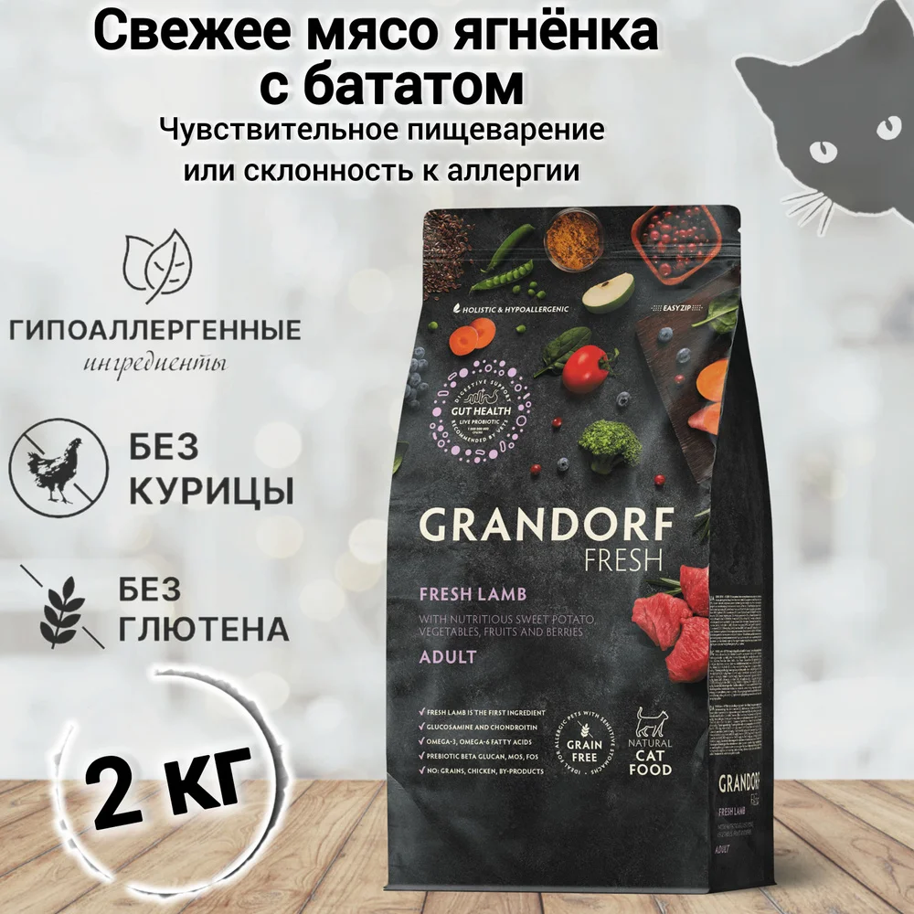 NEW GRANDORF Fresh Cat ADULT Lamb&Sweet Potato (Свежее мясо ягненка с бататом для кошек) 2 кг