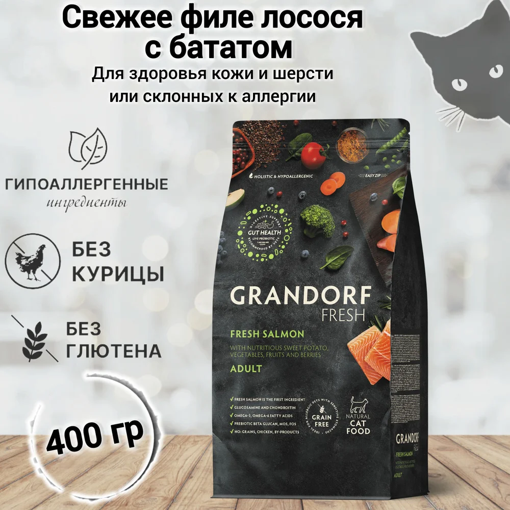 NEW GRANDORF Fresh Cat ADULT Salmon&Sweet Potato (Свежее филе лосося с бататом для кошек) 2 кг