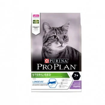 Purina Pro Plan Sterilised 7+ сочетает все основные питательные вещества, включая витамины A, C и E, бета-каротин, жирные кислоты омега-3 и омега-6, натуральный пребиотик и подходит для поддержания здоровья стерилизованных кошек старше 7 лет. Рецептура богата белками, имеет пониженный уровень жира, оптимальную калорийность. Pro Plan Sterilised 7+ разработан с использованием методик RSS и APR, которые позволяют гарантировать сбалансированный уровень pH мочи, что является профилактикой мочекаменной болезни.