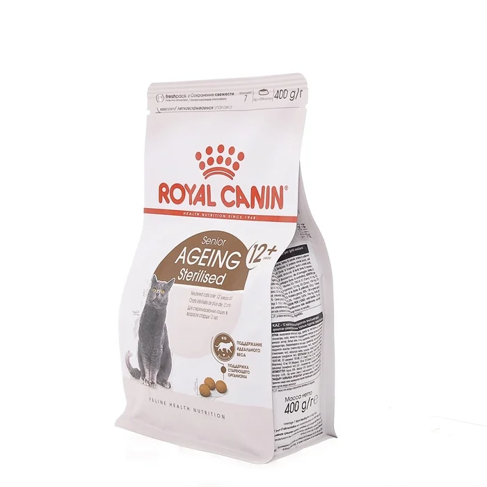 Для удовлетворения индивидуальных предпочтений каждой кошки ROYAL CANIN® Ageing 12+ выпускается также в форме кусочков в соусе или в желе. Кроме того, выпускается альтернативная версия сухого продукта для нестерилизованных кошек.