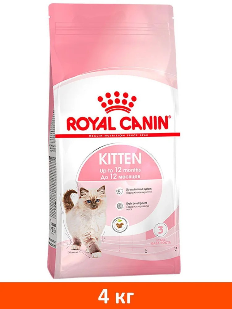 Формула сухого продукта ROYAL CANIN® KITTEN (КИТТЕН) способствует здоровому росту котят, поддерживает иммунитет, баланс микрофлоры кишечника и развитие мозга котенка.