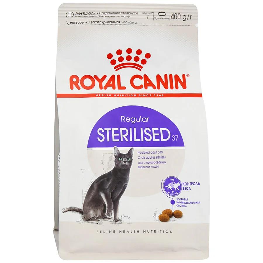После стерилизации потребности в калориях у кошки уменьшаются. Корм Sterilised 37 помогает снизить риск избыточного веса благодаря умеренному содержанию жиров и оптимальной суточной дозировке.Повышенное содержание белка обеспечивает поддержание мышечной массы. После стерилизации кошки часто набирают вес. Повышенное содержание белка корма Sterilised 37обеспечивает поддержание мышечной массы.Разработан для поддержания здоровья мочевыделительной системы за счет сбалансированного содержания минералов.У стерилизованных кошек существует повышенный риск формирования мочевых камней. Корм Sterilised 37 37 разработан для поддержания здоровья мочевыделительной системы за счет сбалансированного содержания минералов.L-карнитин участвует в метаболизме жиров.