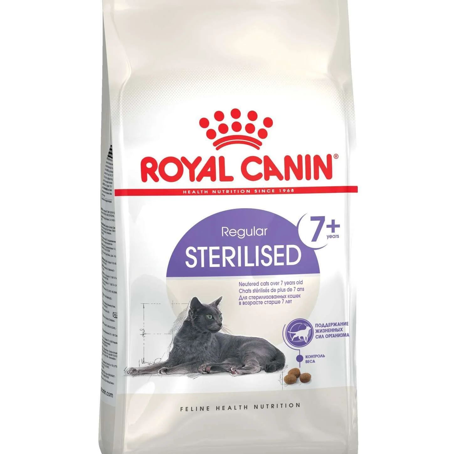 Стерилайзд+7: сухой корм для стерилизованных кошек в возрасте старше 7 лет. Кастрированные и стерилизованные животные в 3,4 раза чаще страдают избыточным весом.