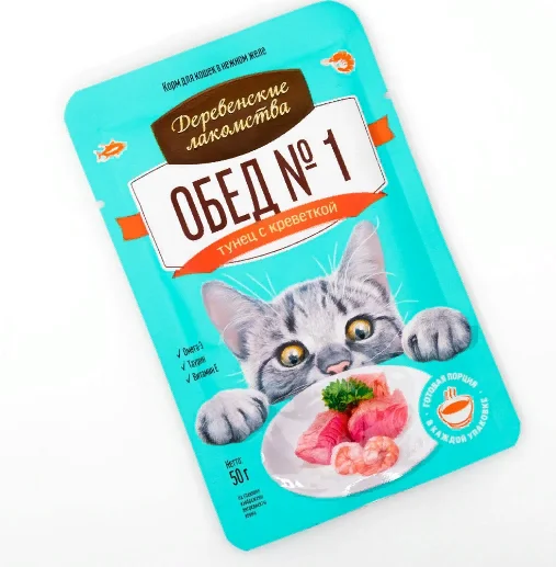 "ДЕРЕВЕНСКИЕ ЛАКОМСТВА" ПАУЧ Д/КОШЕК 50г ТУНЕЦ С КРЕВЕТКОЙ 74501520