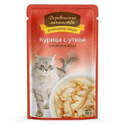 "ДЕРЕВЕНСКИЕ ЛАКОМСТВА" ПАУЧ Д/КОШЕК 70г КУРИЦА С УТКОЙ В НЕЖНОМ ЖЕЛЕ 74500646