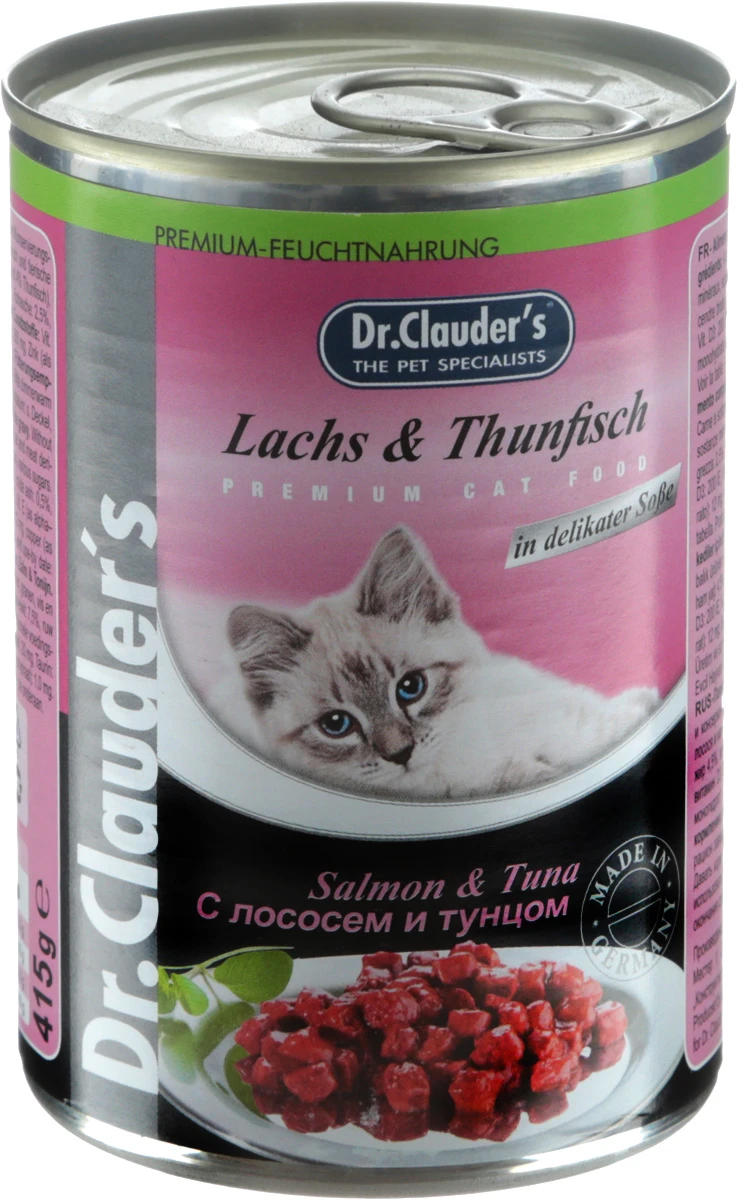 Влажный корм Dr. Clauder’s — это полноценное и сбалансированное питание для взрослых кошек всех пород. Сбалансированный уровень витаминов и минералов обеспечит кошку всеми необходимыми для здоровой и активной жизни питательными веществами. Свежие и натуральные ингредиенты обладают прекрасным вкусом и привлекательным ароматом, а отсутствие в рецептуре искусственных красителей, консервантов и усилителей вкуса делает консервы безопасными для применения в ежедневном рационе.