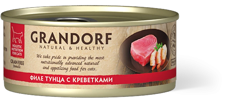 75 % мяса в составе (60 % филе тунца, 15 % креветки).