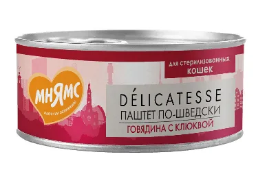 Полнорационный сбалансированный влажный корм с говядиной и клюквой для стерилизованных кошек и кастрированных котов старше 12 месяцев, созданный по мотивам блюд высокой кухни. “Паштет по-шведски” содержит высокое количество животного белка (69%), клюкву, витамины и минералы, таурин, DL-метионин, L-карнитин, обеспечивающие контроль веса и снижающие риск развития мочекаменной болезни. Без ГМО, сои, искусственных красителей и ароматизаторов.