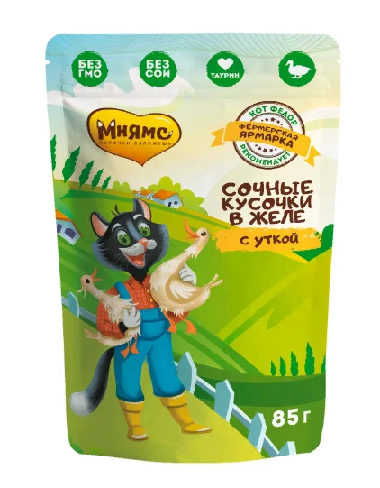 Влажный корм “Фермерская ярмарка” линии Кот Федор - это сбалансированный рацион, который обязательно понравится вашей кошке. Насыщенный вкус утки в каждом кусочке порадует как активного исследователя, так и домоседа, и позволит почувствовать себя настоящим фермерским жителем. -Без ГМО -Без сои -Без консервантов -Без ароматизаторов -Без усилителей вкуса -Без искусственных красителей Корма и лакомства от “Мнямс” - для всех, кто умеет любить.