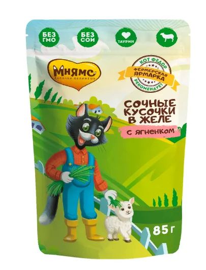 Влажный корм “Фермерская ярмарка” линии Кот Федор - это сбалансированный рацион, который обязательно понравится вашей кошке. Насыщенный вкус ягненка в каждом кусочке порадует как активного исследователя, так и домоседа, и позволит почувствовать себя настоящим фермерским жителем. -Без ГМО -Без сои -Без консервантов -Без ароматизаторов -Без усилителей вкуса -Без искусственных красителей Корма и лакомства от “Мнямс” - для всех, кто умеет любить.