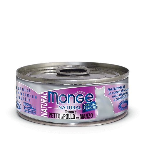Полнорационный консервированный корм консервы для кошек тунец с курицей и говядиной. Нежные кусочки в аппетитном желе для кошек с добавлением свежего мяса итальянского кролика. Паучи Monge Grill для кошек беззерновые, сделаны из отборных ингредиентов высокого качества, обогащены витаминами и минералами, что гарантирует заботу о здоровье, качестве и продолжительности жизни питомца.
