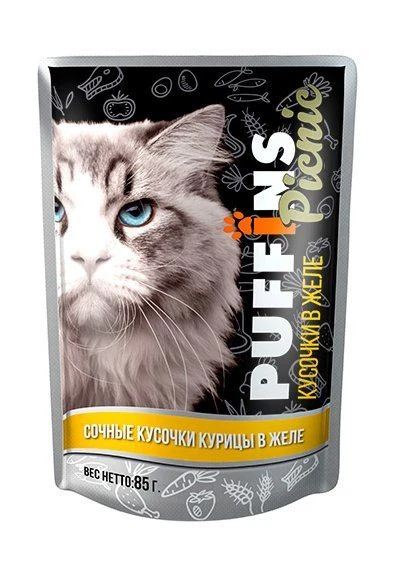 "PUFFINS" PICNIC ПАУЧ Д/КОШЕК 85г (КУРИЦА В ЖЕЛЕ) 9497
