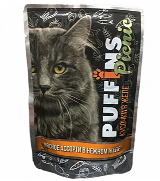 Консервированный полнорационный корм для кошек. Изготовлено из мяса, не содержит сои, консервантов и генетически модифицированных продуктов.