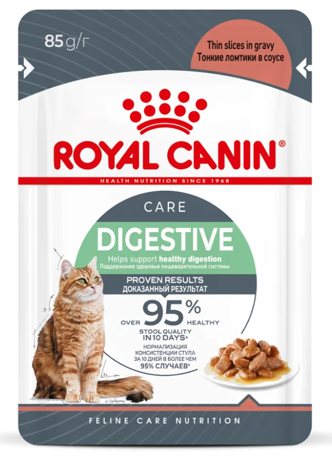 Корм консервированный полнорационный для взрослых кошек с чувствительным пищеварением Digestive Care, тонкие ломтики в соусе – влажный корм для взрослых домашних кошек в возрасте старше 1 года, специально разработан с учетом потребностей вашей кошки в питательных веществах.