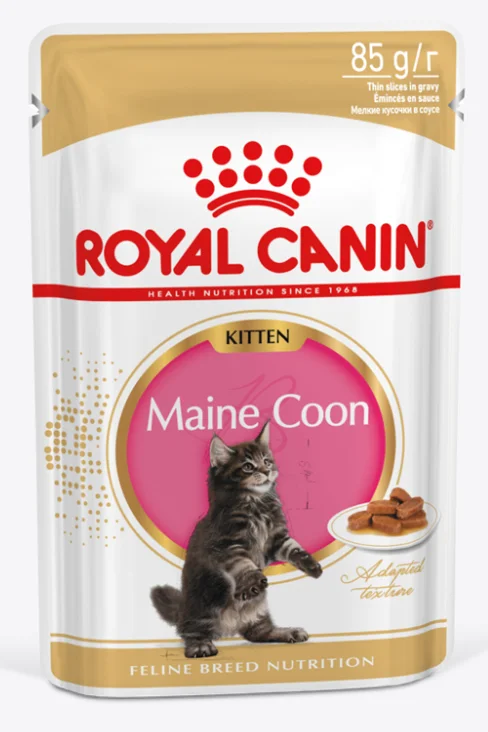 Корм консервированный полнорационный для кошек MAINE COON KITTEN, мелкие кусочки в соусе - влажный корм для котят породы Мэйн Кун в возрасте до 15 месяцев.