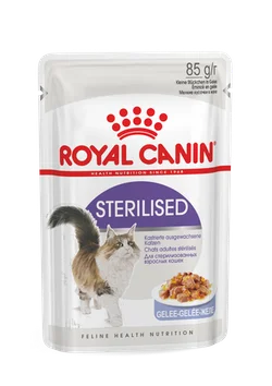 Стерилайзд: влажный корм для стерилизованных взрослых кошек. После кастрации или стерилизации энергетические потребности кошки снижаются на 30%, притом что потребление корма может возрасти на 20%. Кусочки в соусе для кастрированных/стерилизованных кошек с тенденцией к полноте, в возрасте от 1 до 7 лет.Состав: мясо и мясные субпродукты, злаки, субпродукты растительного происхождения, экстракты белков растительного происхождения, минеральные вещества, источники углеводов.