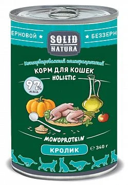 Solid Natura с кроликом - консервированное влажное питание для кошек. Беззерновое. Холистическое. Монопротеиновое. Одновременное применение данных качеств создаёт синергетический эффект. Изготовлено в России из лучших сортов отечественного мяса и птицы.