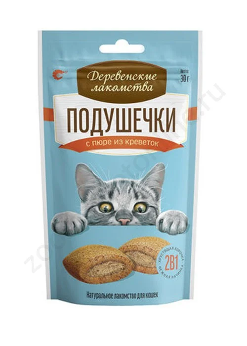 "ДЕРЕВЕНСКИЕ ЛАКОМСТВА" Д/КОШЕК ПОДУШЕЧКИ С ПЮРЕ ИЗ КРЕВЕТОК 30г 79207781