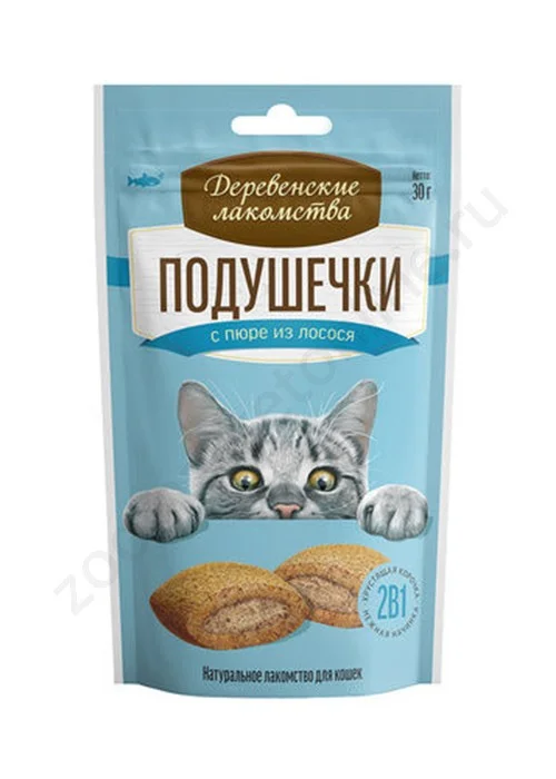 "ДЕРЕВЕНСКИЕ ЛАКОМСТВА" Д/КОШЕК ПОДУШЕЧКИ С ПЮРЕ ИЗ ЛОСОСЯ 30г 79207767