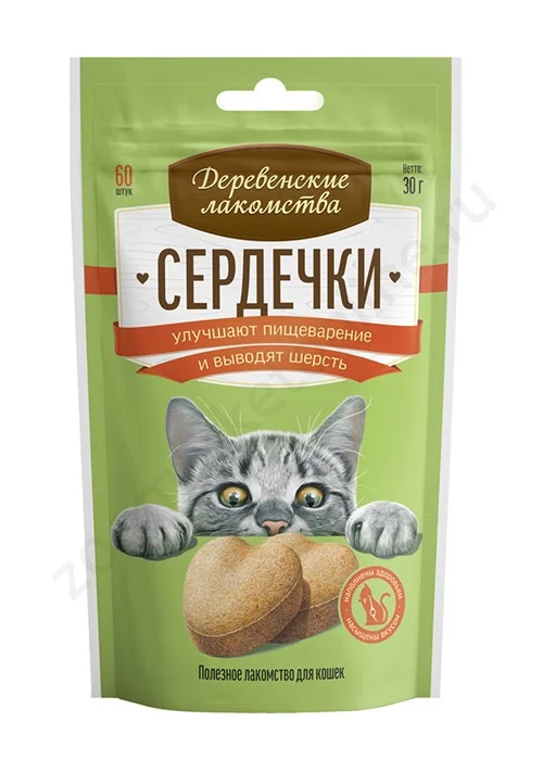 "ДЕРЕВЕНСКИЕ ЛАКОМСТВА" Д/КОШЕК СЕРДЕЧКИ (УЛУЧШ.ПИЩЕВАРЕНИЕ И ВЫВОДЯТ ШЕРСТЬ) 30г 76050779