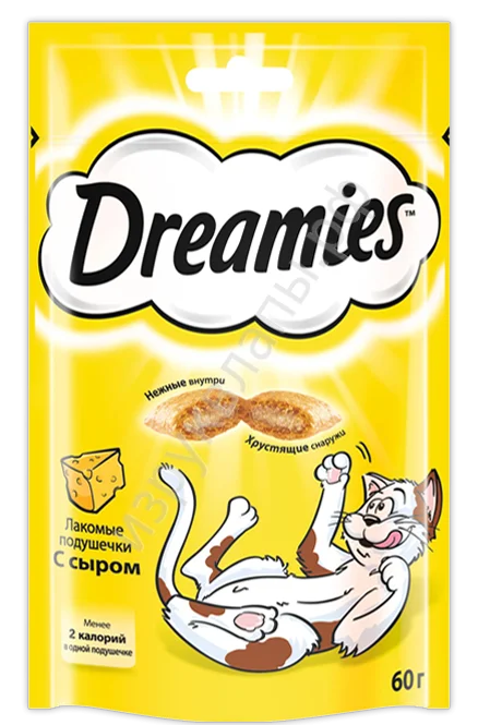 Лакомые подушечки для кошек DREAMIES с сыром, 60 г – лучшее лакомство для вашего любимого питомца. Продукт изготовлен на основе натуральных компонентов. Входящие в состав злаки, витамины и минералы укрепляют иммунитет кошки, улучшают метаболизм, положительно влияют на шерсть. Хрустящие подушечки с изумительной сырной начинкой станут любимым лакомством вашего котика. Нежный продукт не портит зубы, напротив, укрепляет зубную эмаль и не раздражает десны.