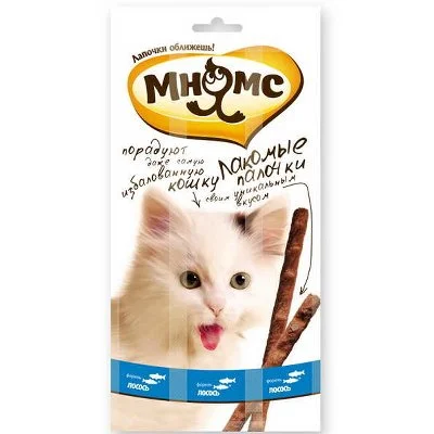 Мнямс лакомые палочки для кошек с лососем и форелью станут любимым угощением для вашего питомца. Кроме того, что каждая палочка содержит высококачественные морепродукты, в ее состав также входят и продукты растительного происхождения, которые гарантировано подарят кошке здоровый вид.