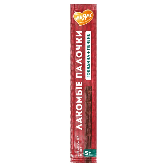 Лакомство Мнямс лакомые палочки 13,5 см для кошек с говядиной и печенью 10х5 г NEW