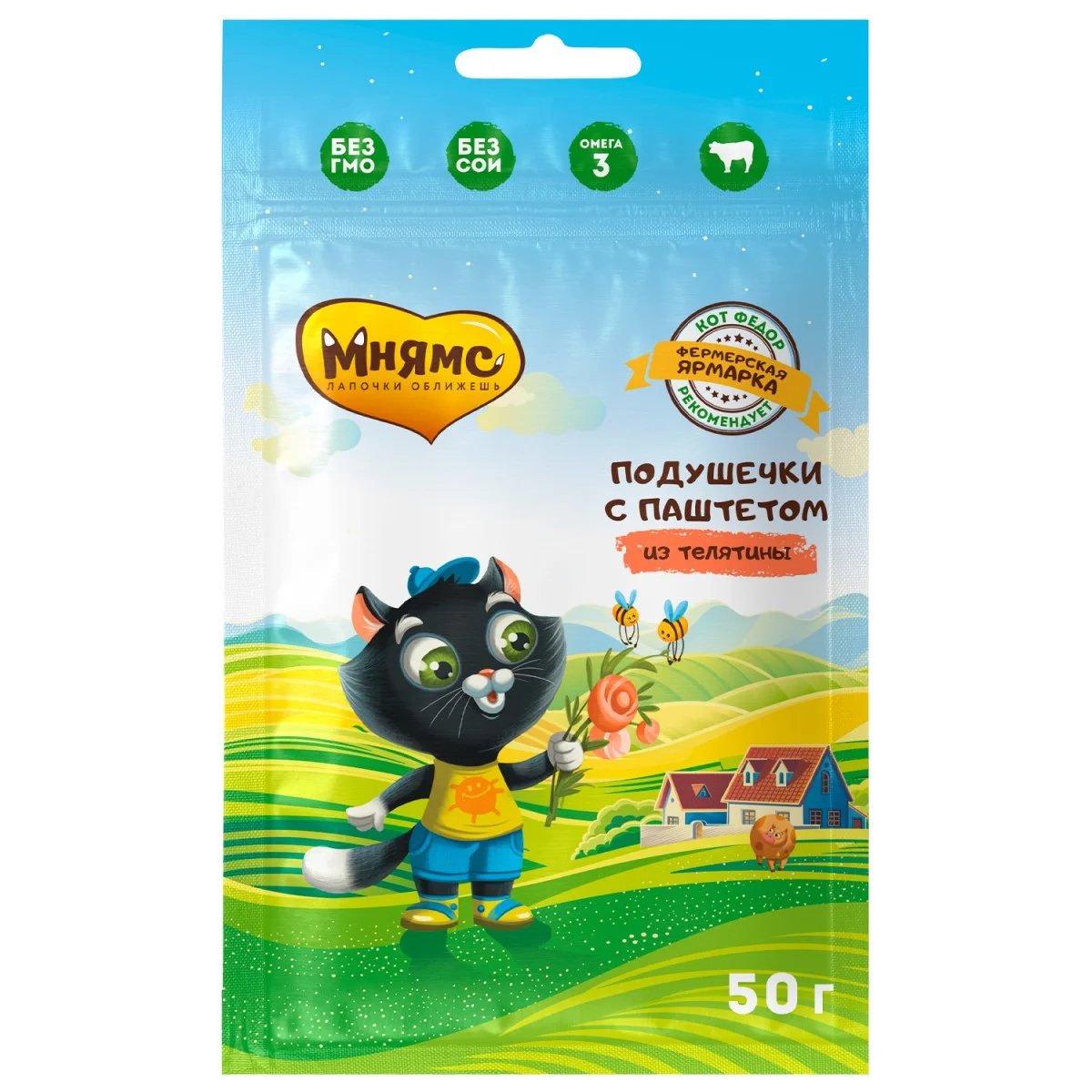 Мнямс Лакомство для котят «хрустящие подушечки с паштетом из телятины линии Кот Федор "Фермерская Яр
