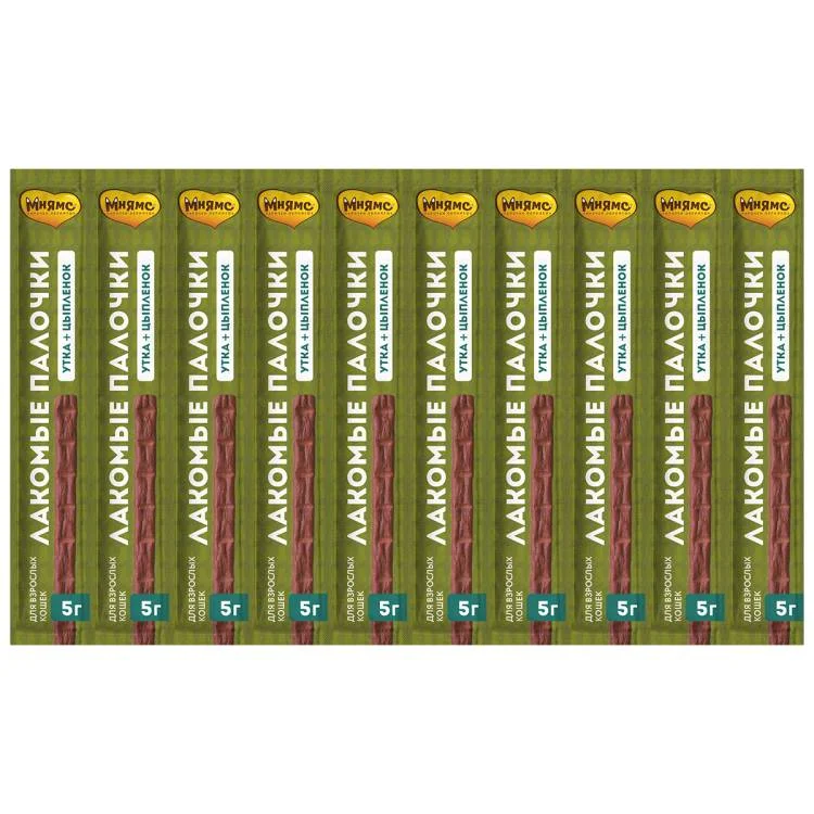 Мнямс лакомые палочки 13,5 см для кошек с цыпленком и уткой 10х5 г
