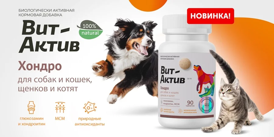 Вит-Актив Хондро – это комплексный хондропротектор, включающий все необходимые компоненты для эффективного восстановления и поддержания функций опорно-двигательного аппарата у домашних животных:
